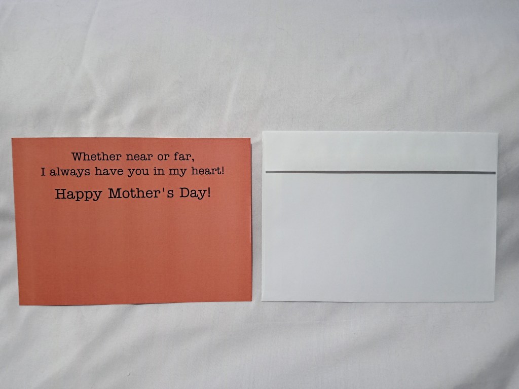 Back: “Whether near or far, I always have you in my heart! Happy Mother’s Day!”