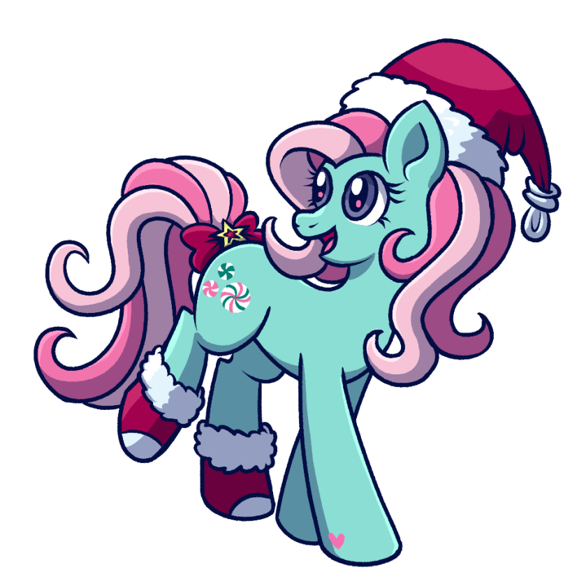 Description: Minty from My Little Pony wearing a Santa hat, socks, and a bow.