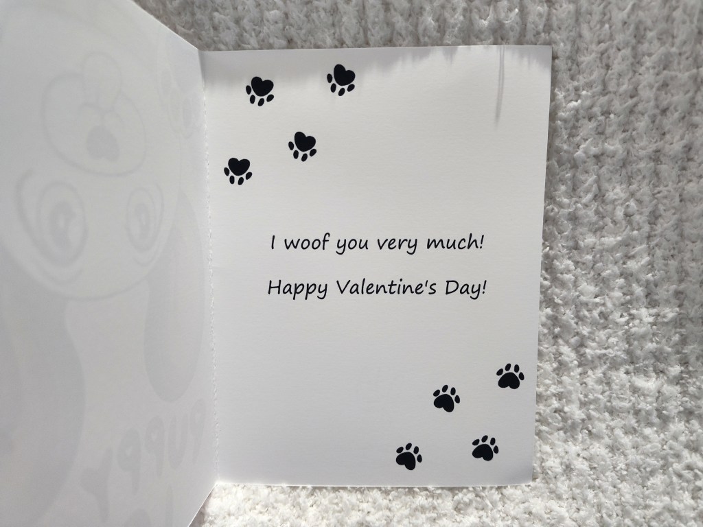 Inside Message: “I woof you very much! Happy Valentine’s Day!”